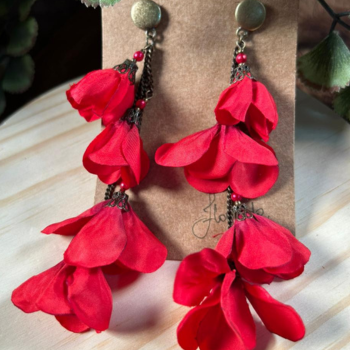 Brinco par de pétalas fascinantes (cascatas com 4 flores) vermelho