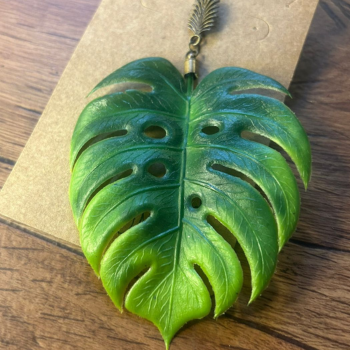 | Folha com aprox. 9 cm com base de pinos (taxinha) em ouro velho. Devido ao processo artesanal, as peças podem apresentar variações de cor e tamanho. |